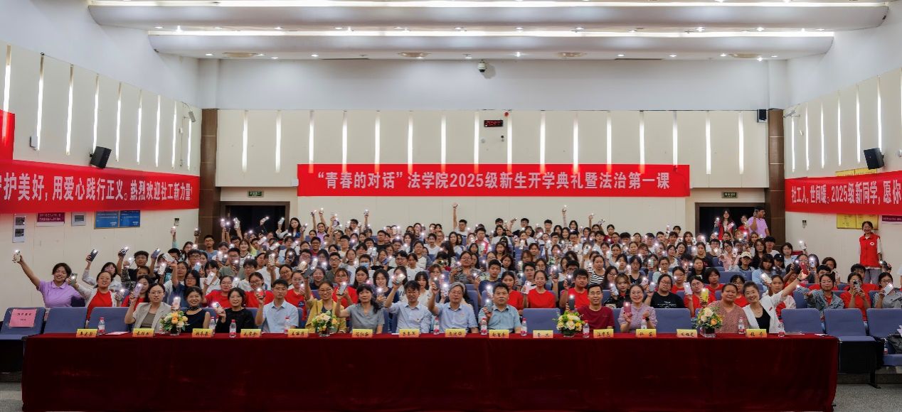 9月23日晚,伟德国际2025级新生开学典礼在德正楼二楼模拟法庭隆重举行。典礼以“青春的对话”为主题,学院全体领导、优秀教师代表、杰出校友代表、学工团队及全体2025级本硕新生共同参与。活动由学院党委副书记刘英华主持。