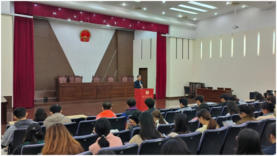 11月7日中午,我院党委书记黄建国在德正楼二楼模拟法庭给党的发展对象讲授“学习党的二十届三中全会中的法治元素”主题党课。