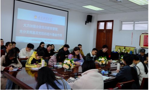 黄建国书记强调,基层党组织是党在社会基层组织中的战斗堡垒,基层党员是党的声音的传播者、党的政策的执行者、党与群众的沟通者。党员是党的肌体的细胞,党员合格,党的组织才坚强有力。因此加强党员教育管理,对于提升党组织凝聚力和战斗力有重要意义。他要求,党支部要从严落实“三会一课”、民主评议党员、主题党日活动等党内制度,扎实有效地开展好党员的日常学习教育,确保学习制度化、经常化;研究生党员不仅要在学业、学术上追求卓越,更要在党性修养上不断自我提升,勇于正视自身的不足,勇于自我革命,更好地发挥先锋模范作用,才能筑牢党支部战斗堡垒实效。
