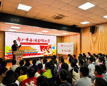 本次普法宣传教育活动主题为“加强未成年人的法制教育,预防和减少未成年人犯罪”,由我院研究生第一党支部朱亚欧、丁乔梅同志主讲。宣讲分为知晓法律、青少年三大法律责任、刑事法律责任、对违法行为的自我防范四个部分,同时通过切身实际、通俗易懂的小案例,来让孩子们更加贴切地感受到法律无处不在。