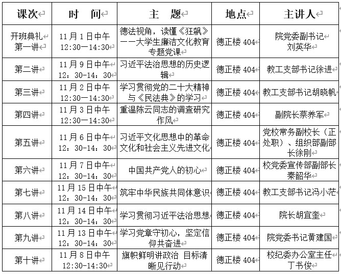 2.党课课程安排表