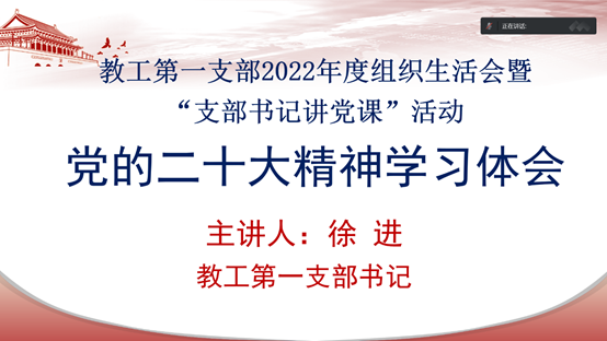 2023年1月11日,伟德国际教工第一党支部在线上召开2022年度组织生活会暨“支部书记讲党课”活动。本次活动由支部书记徐进主持,全体党员同志参加。