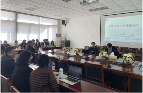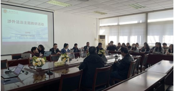 11月12日,我院在德正楼404会议室开展涉外法治主题教研活动。本次活动由我院蔡养军副院长主持,校教学督导莅临指导。法律系主任徐进、副主任郭建勋,国际法教研室主任孙劼,全体涉外法治光明班指导老师和部分学生参加教研活动。