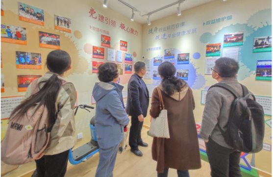 最后,在杨明处长带领下,我院与会人员参观了网约配送行业协会支部工作成果展览室,进一步了解南京市政府对新就业形态从业者权益的保护所做出的努力与取得的优秀成果。