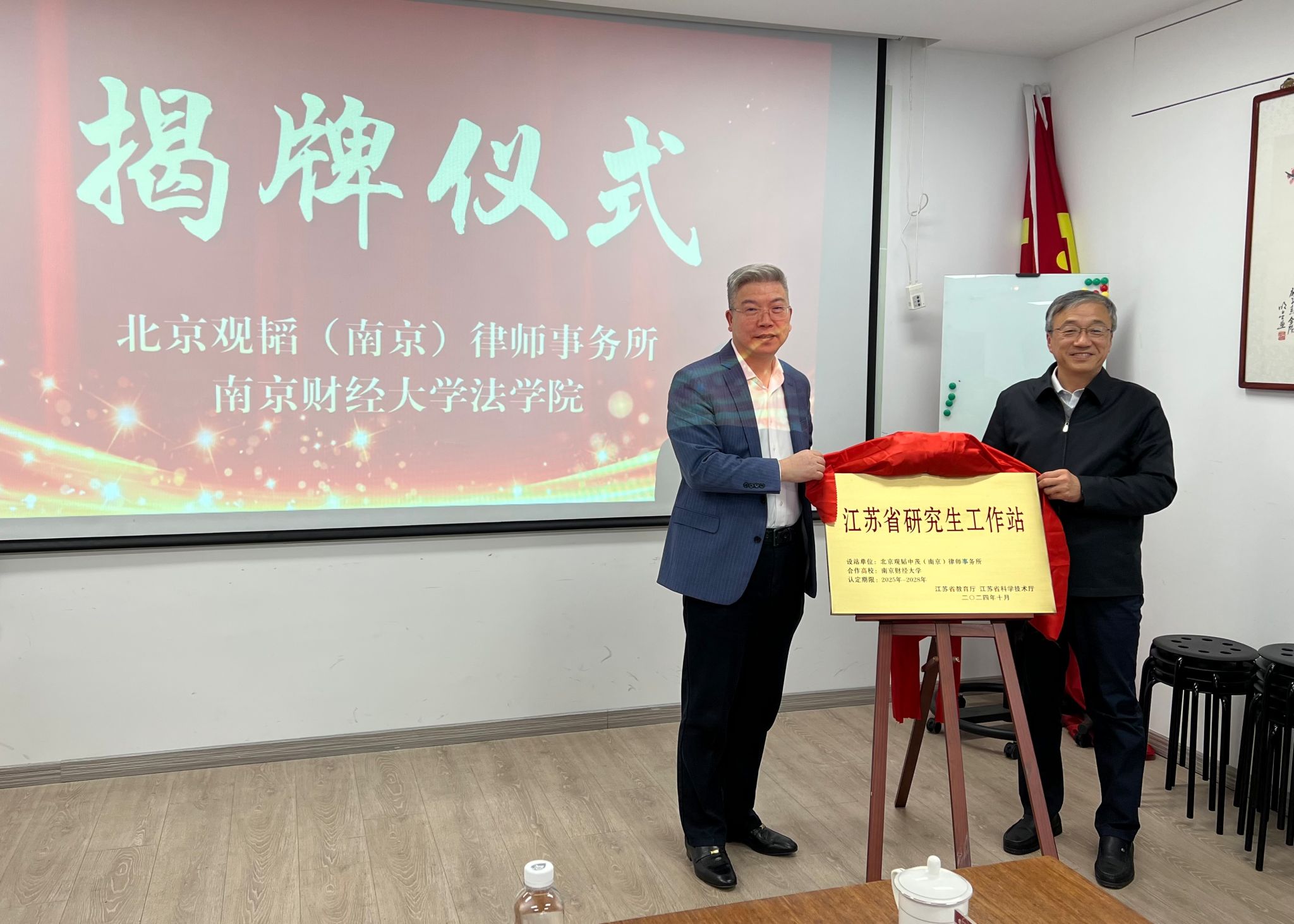 随后,李茜书记与来云龙主任共同为江苏省研究生工作站揭牌。