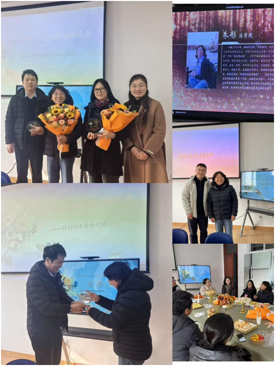学院党委副书记刘英华向两位老师表达了崇高的敬意,“躬耕杏坛数十载,育人初心不曾改”,感谢两位老师对学生尽心的培育,为法学事业进步贡献的智慧,并祝愿两位老师的退休生活更加丰富多彩,同时希望年轻教师要传承她们对学生的无限爱心,对学院发展无私奉献的精神品质。