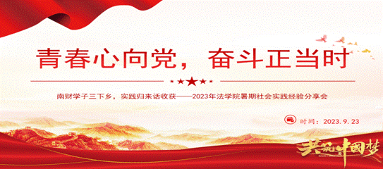 2023年9月23日晚,我院2023年暑期社会实践经验分享会在德正楼模拟法庭召开。学院教师代表相鹏老师,院分团委书记田旭光老师,院分团委学生副书记薛清源、李雅静出席分享会,分享会由李阳、刘思含主持。