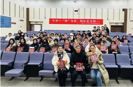 黄建国书记与考研学生亲切交流,询问他们的的复习进度,备考情况。考研已进入冲刺决胜阶段,他希望同学们在考研复习关键时期能抓紧时间、坚定信念,考出好成绩。刘英华副书记叮嘱同学们,要保持良好的心态,在备考的最后阶段要注意劳逸结合,张弛有度。随后,三位老师为毕业生发放考研大礼包。“今年一‘研’为定,明年定为研一!”,一份份加油包蕴含着对考研学子的美好祝福,祝愿每一位学子都能实现考研梦想,高分上岸。同学们纷纷感谢学院的关心和鼓励,同时也表达了对自己一战成“硕”的坚定信念。