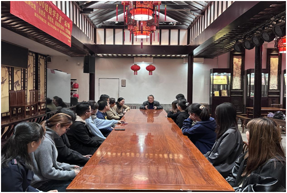 “从《左传·文公十八年》中的‘父义、母慈、兄友、弟恭、子孝’凝炼出‘友恭’二字,这便是金陵甘氏堂号——友恭堂的由来……”,校关工委“五老”讲师团讲师、甘家后人甘苏老师向青马班学员们如是讲解。2024年4月17日下午,一堂“行走的思政课”正在甘熙故居里有声有色地开展着,本次课程邀请到甘氏第七代传人——甘苏老师作主讲人,学员们在我院关工委、工会的组织下共上了一节别开生面、精彩纷呈的思政公开课。我院教务科研办主任龚月红、科研秘书康兰媛、辅导员张芳参加了活动。