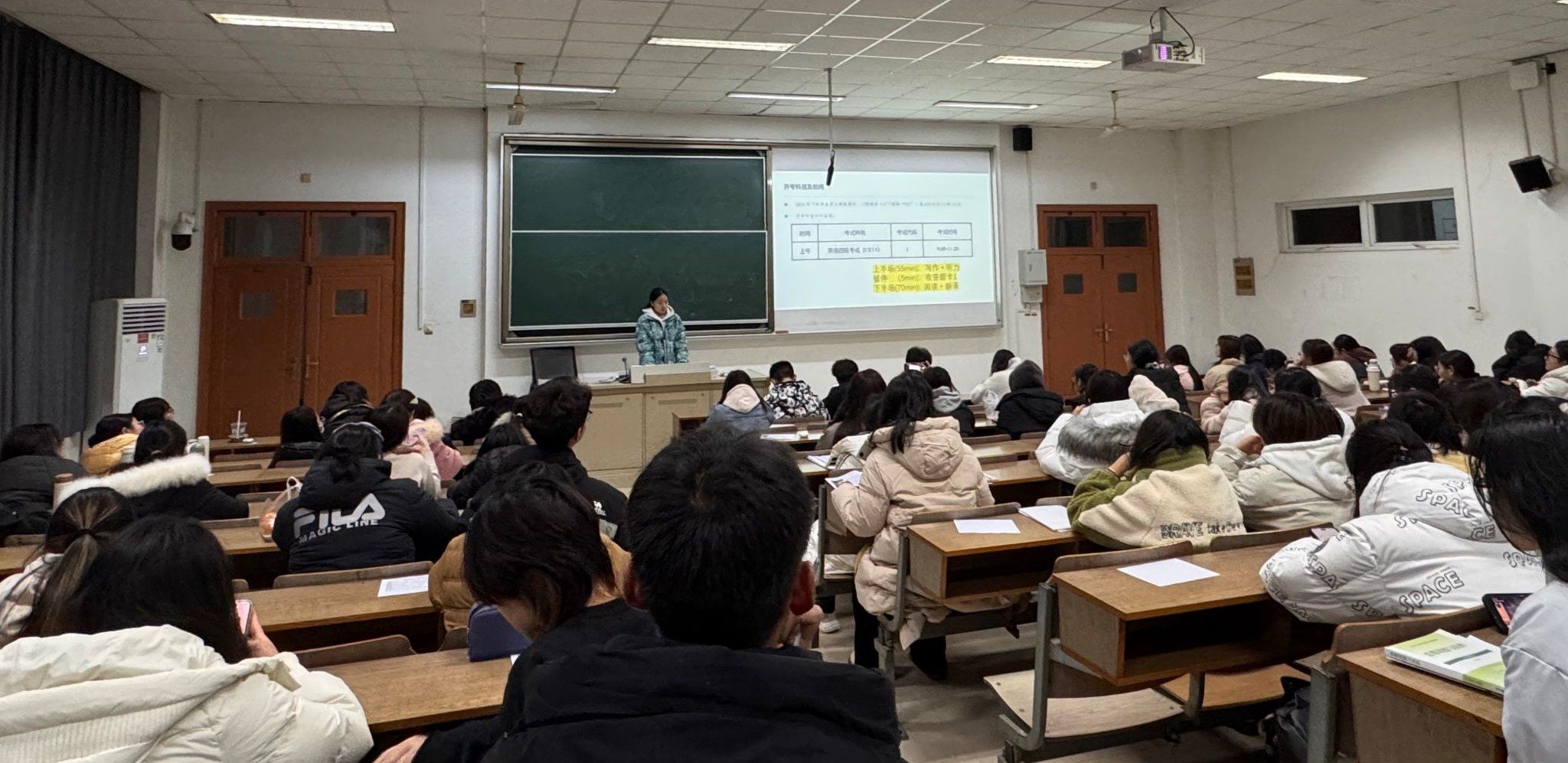 为了帮助同学们更好地备战即将到来的大学英语四级考试,我院于12月12日下午在教学楼JC408教室成功举办了一场以“四级考试注意事项及期末考试诚信教育”为主题的班会。全体大一学生参与班会。