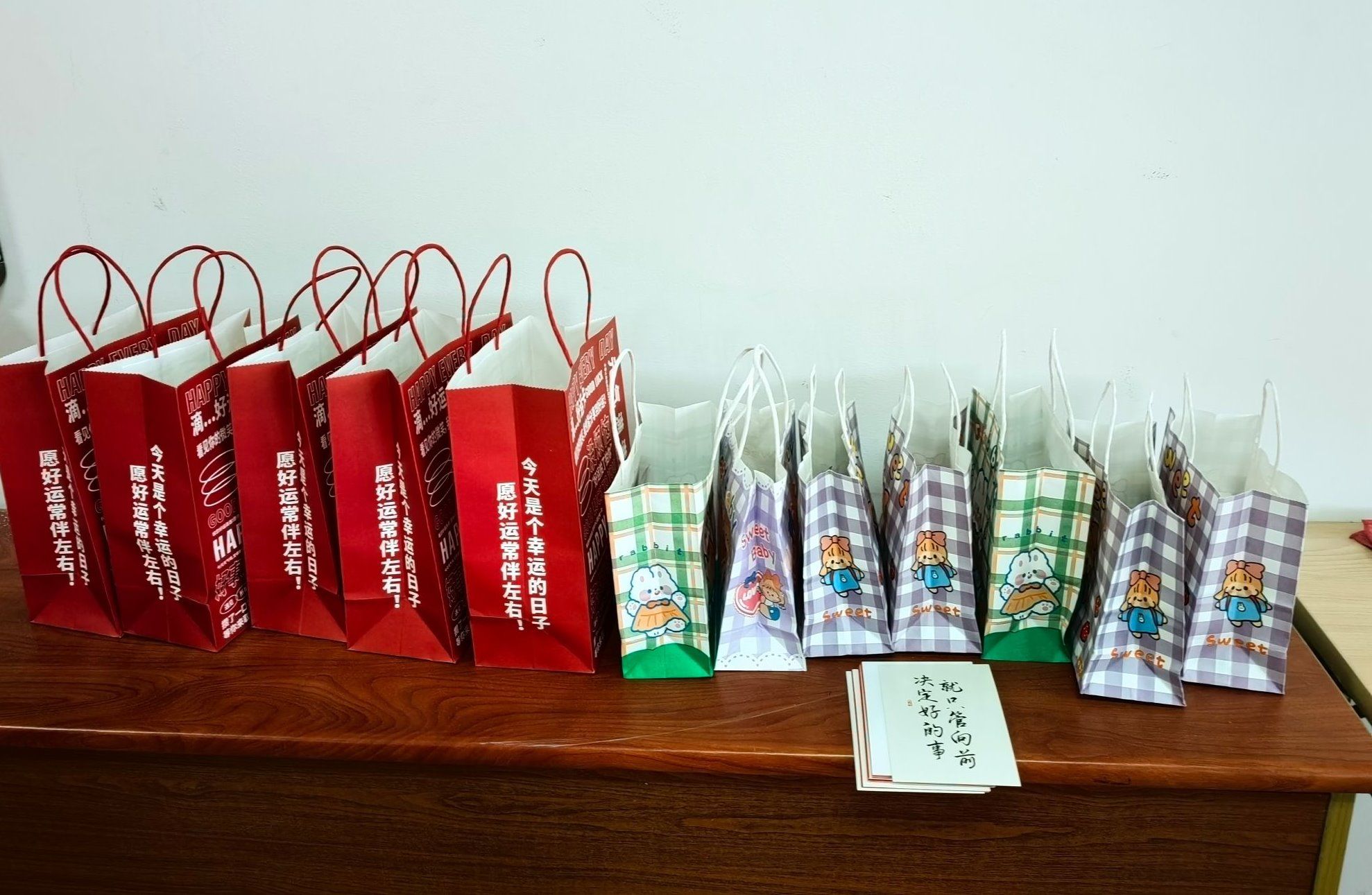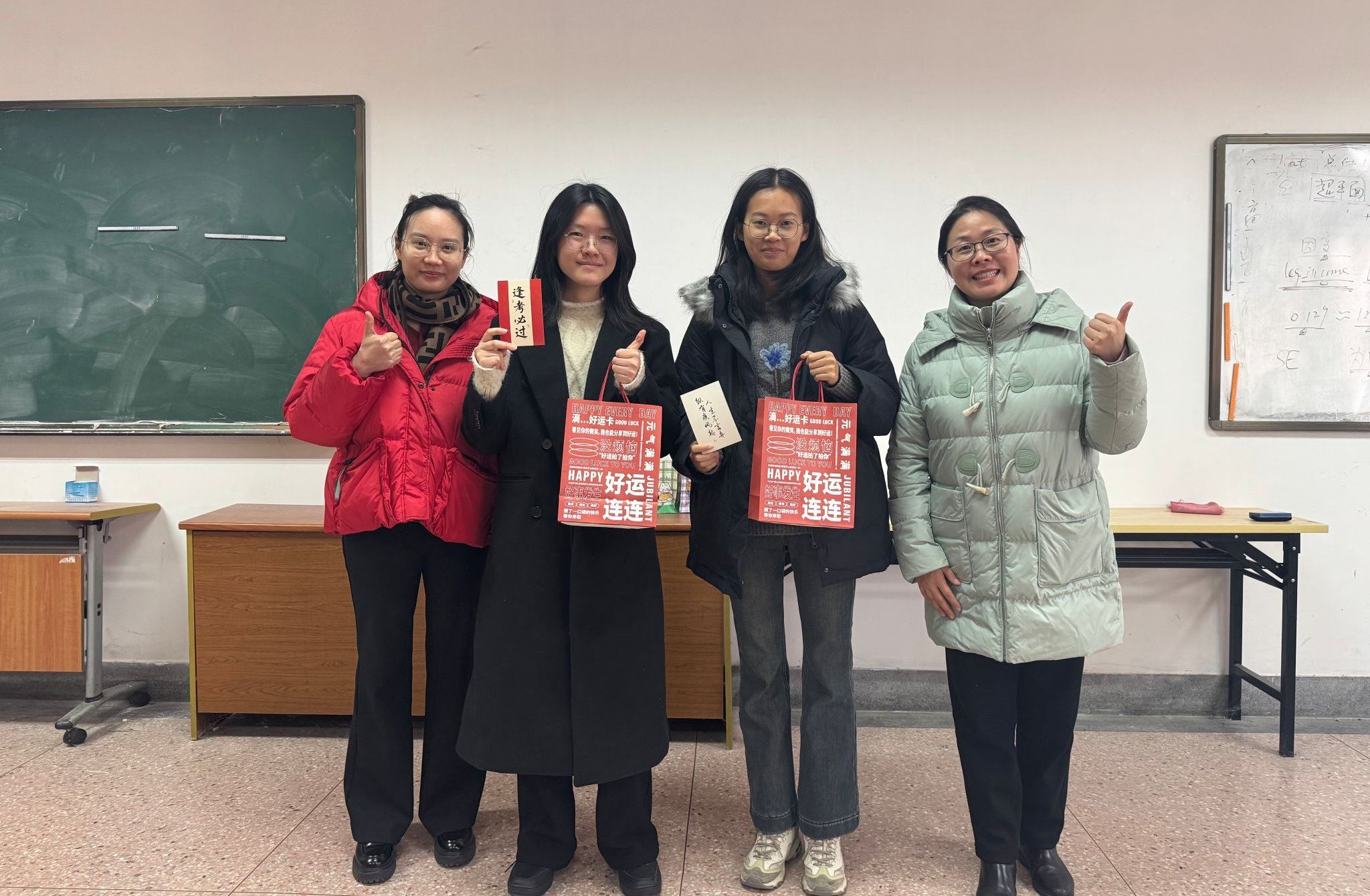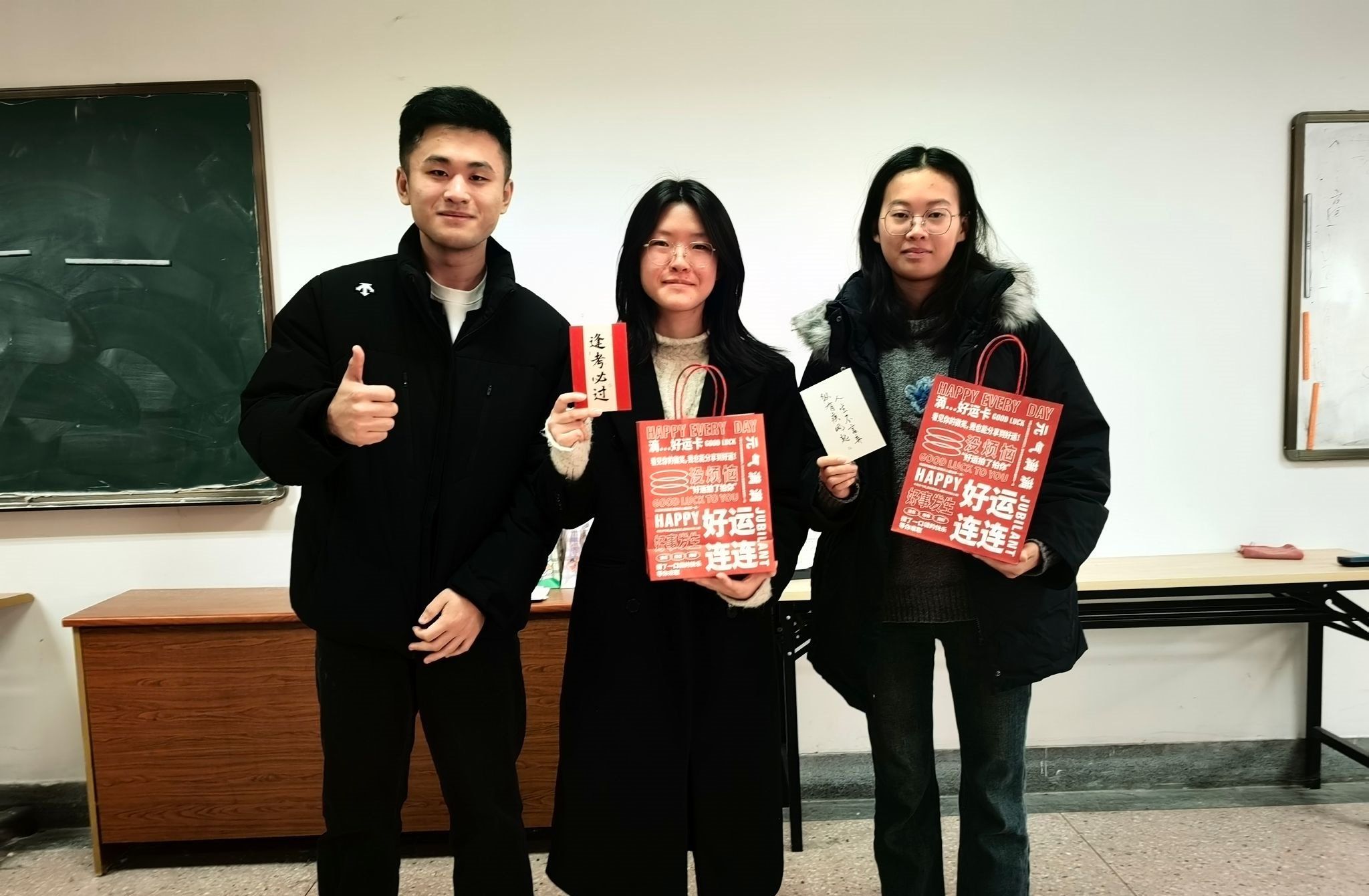 小小的“考研暖心包”内涵丰富,凝结着大大的心意。肩颈护理贴、蒸汽眼罩缓解了即将上考场的学长学姐的疲劳;旺仔牛奶、德芙巧克力补充体力的同时,也寓意着“考得旺旺、答得丝滑”;甚至还有一只可爱的网红玩偶,“希望它能陪伴学长学姐们度过这最后的几天,祝愿学长学姐能考的全会,蒙的全对!”社工2201班陆金唯同学说道。老师们亲笔为每位备考同学写下明信片,装入“顺遂”“如愿”的信封中,用最真诚的文字传递能量。