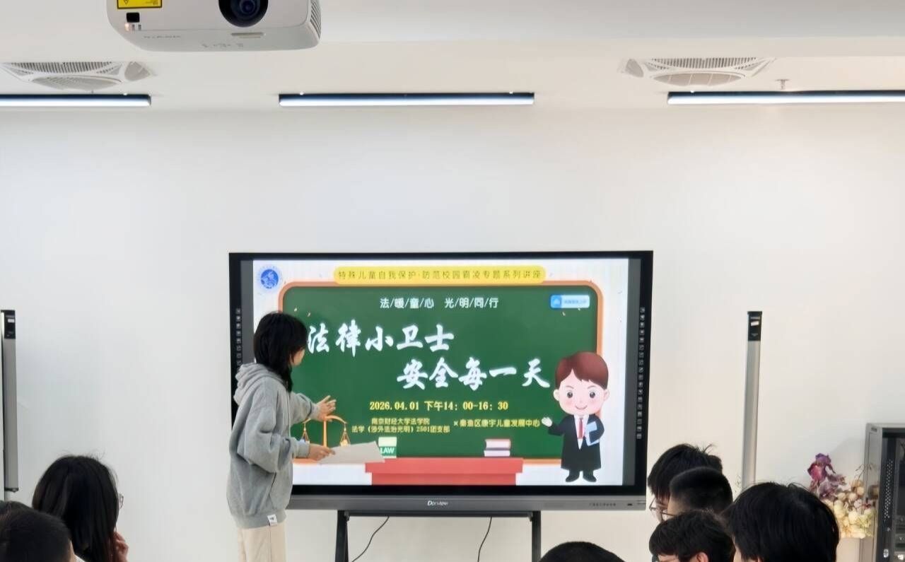 为深入践行雷锋精神,切实关爱特殊儿童群体,引导青年学子以专业所长服务社会,近日,我院法学(涉外法治光明)2501团支部志愿者走进秦淮区康宇儿童发展中心,开展“法暖童心,光明同行——特殊儿童自我保护・防校园霸凌”公益讲座志愿服务活动。志愿者们以一对一陪伴为载体,通过互动游戏、情景模拟、手工实践等形式,帮助特殊儿童提升安全防护意识,掌握实用自我保护技能,用青春行动传递法治温度与人文关怀。