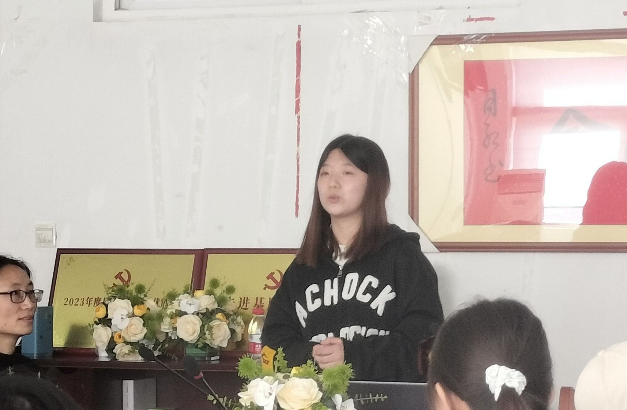 随后,招生宣传参与者代表马柳颖同学分享了她的招生宣讲故事。她向各位同学讲述了2023年参加招生宣传活动中的具体联络和宣讲事宜,提醒同学们要提前了解各学校学生具体情况,开展具有针对性、个性化的宣传,积极为母校输送更多人才。