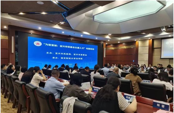 6月4日,“为爱蓄能:宜兴市慈善会头雁人才”专题培训班开班仪式在我校工科楼报告厅举办。本次培训班由宜兴市民政局、宜兴市慈善会主办,我院承办。宜兴市民政局副局长朱政、宜兴市慈善会副秘书长虞婧,我院院长胡宜奎教授等领导和嘉宾出席开班仪式,来自宜兴市慈善会、街镇社会事业局、社区(村)等单位的60位学员参加开班仪式。开班仪式由我院社会工作系主任许芸副教授主持。