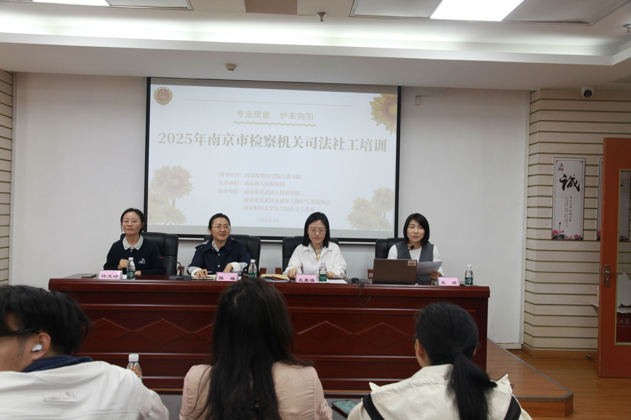 为加强未成年人司法保护专业队伍建设,提升司法社工服务能力,4月25日,由南京市玄武区人民检察院、南京市玄武区未成年人保护与发展协会与我院联合举办的“专业赋能护未向阳”2025年南京市检察机关未成年人司法社工培训班在向阳花未成年人保护中心顺利开班。来自全市司法社工机构的近40名专业社工及我院5名社工专业学生参加了此次培训。