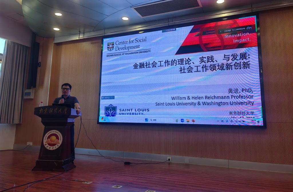 5月16日上午10:00,美国圣路易斯大学社会工作学院黄进教授应邀到我院作主题为“金融社会工作的理论、实践与发展:社会工作领域新创新”的学术讲座。讲座由我院社会工作系主任许芸副教授主持,中国社会工作教育协会副会长、南京大学社会学院彭华民教授进行评议,我院部分师生及南财社会工作系的合作单位人员参会,并就金融社会工作主题进行了学术交流。