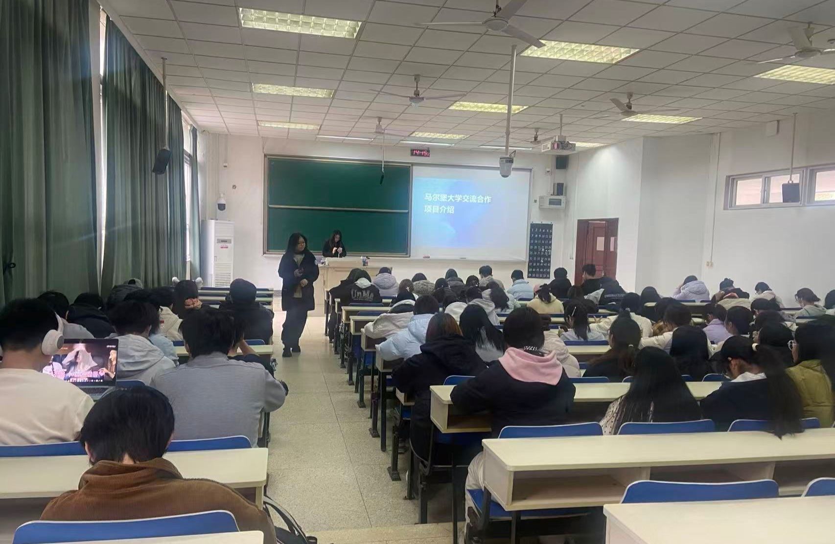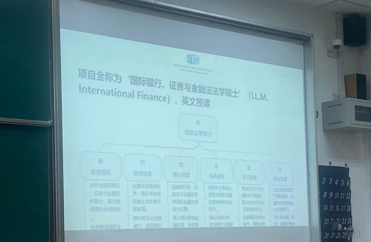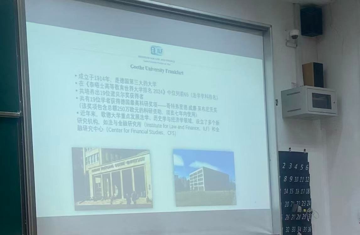 12月19日下午,我院教师顾朱辰博士在德业楼101教室宣讲了两个国际交流项目。一个是德国马尔堡大学法学专业本科生交流项目,另一个是德国法兰克福大学法律与经济学院“国际银行、证券与金融法法学硕士”项目。马尔堡大学法学项目发端于2010年,至今已有15年,我校法学专业50多名本科生通过这个项目走出国门。法兰克福大学法学硕士项目今年签约,面向我校法学专业和经管类专业的本科四年级学生及在读研究生,每年招收5人。
