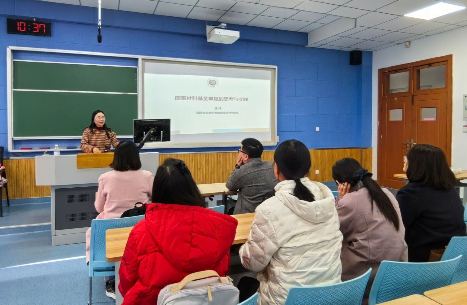 进一步提升我院社会工作系教师国家社科基金项目申报质量、增强科研核心竞争力,11月27日上午,我院社会工作系在博文楼105室召开2026年度国家社科基金项目申报指导会。深圳大学政府管理学院社会学系博士生导师、社会工作专业硕士教育中心主任唐咏教授应邀作为指导专家出席会议,社会工作系中青年教师参加会议。指导会由我院社会工作系主任、MSW教育中心主任许芸副教授主持。