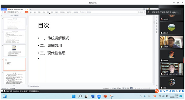2022年11月10日晚,南京大学伟德国际张仁善教授应邀为我院师生作了主题为“传统纠纷调解模式、效用及现代性省思”的讲座,此次讲座是我院法学教育二十五周年的系列庆祝活动之一。讲座采用线上方式(腾讯会议)举行,我院陈红梅副院长出席本次讲座。会议由我院夏清瑕教授主持,我院青年教师徐进博士、谢舒晔博士、王树良博士担任与谈人,180多名学院师生在线听讲。