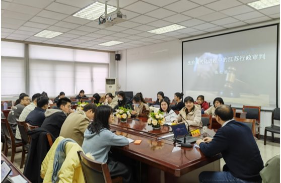 2023年12月15日下午15:00,江苏省高级人民法院行政庭副庭长、三级高级法官张松波应邀在德正楼伟德国际404会议室作主题为“法治现代化进程中的江苏行政审判”讲座。讲座由我院陈红梅副院长主持,我院部分研究生参加。