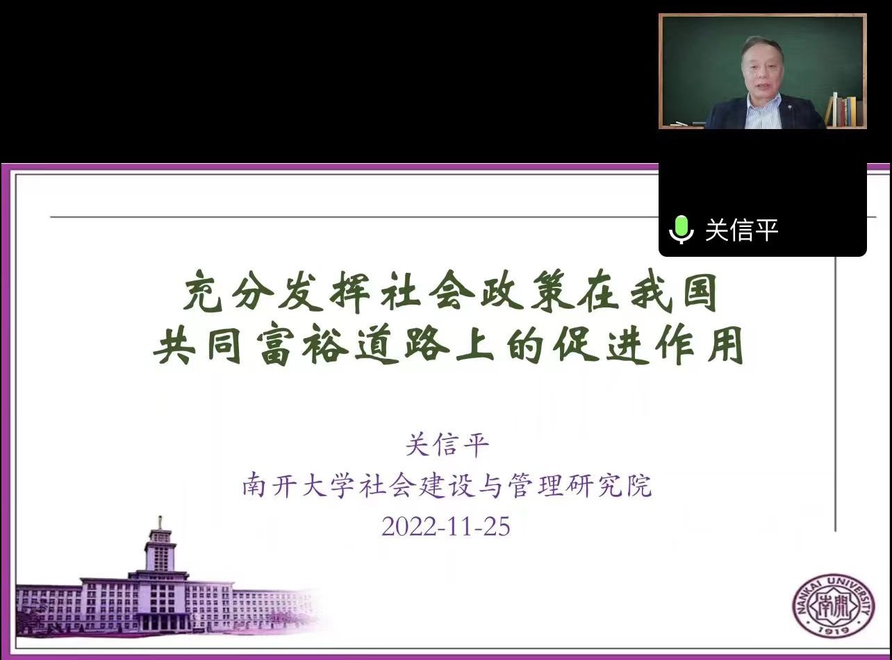 南开大学关信平教授受邀在我院开展线上讲座